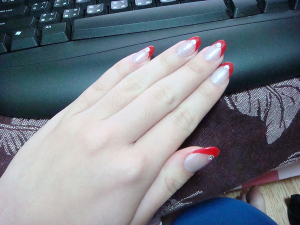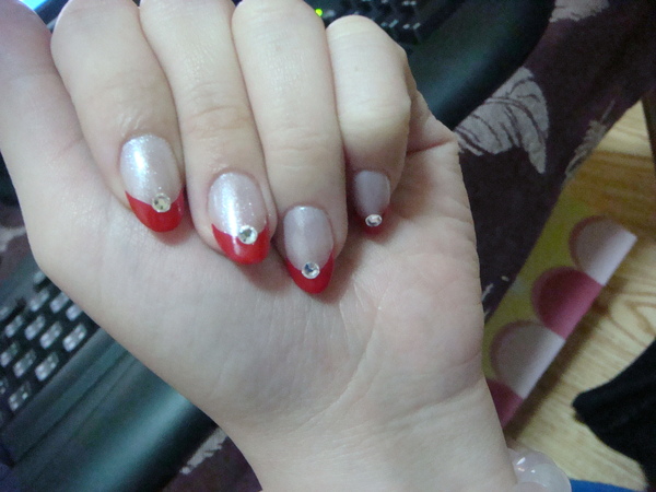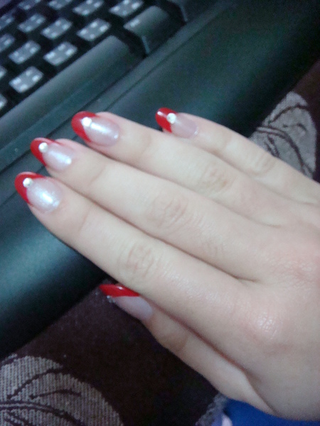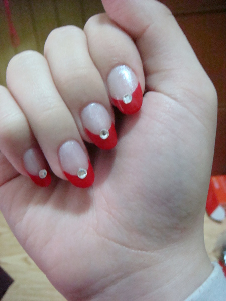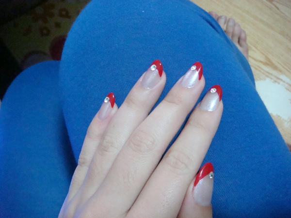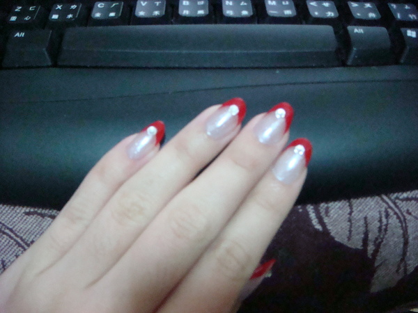 她問我要怎樣造型 我說要紅色法式 橢圓形不要弄方的